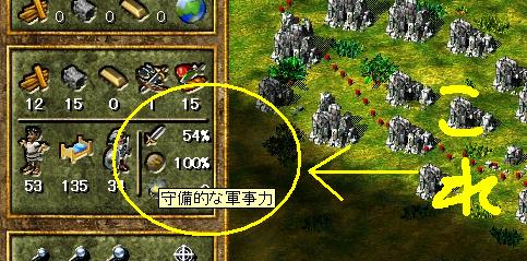↑ここ!これが兵士の攻撃力及び防御力のようです。アイキャッチャー設置でこの数値が上昇し、そして兵士が強くなりました。