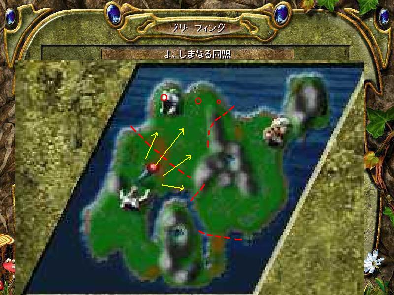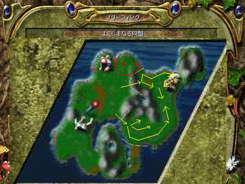 岬先端の監視塔は上陸してきたマヤに“わざと”奪わせる。 これによって“マヤ本隊”から兵30~40のパトロールが開始されるので、それを迎え撃つ形で駆逐。 これはマヤ本隊が大軍で攻め込んで来ないようにする為の“ガス抜き”なのでかなり重要になる。