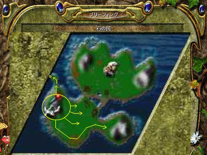 岬先端の監視塔は上陸してきたマヤに“わざと”奪わせる。 これによって“マヤ本隊”から兵30~40のパトロールが開始されるので、それを迎え撃つ形で駆逐。 これはマヤ本隊が大軍で攻め込んで来ないようにする為の“ガス抜き”なのでかなり重要になる。
